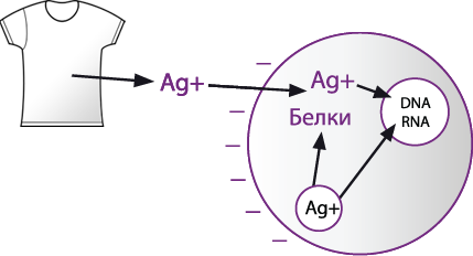 Ионы серебра (+) передаются с одежды на кожу благодаря температуре и влажности тела, вследствие чего: